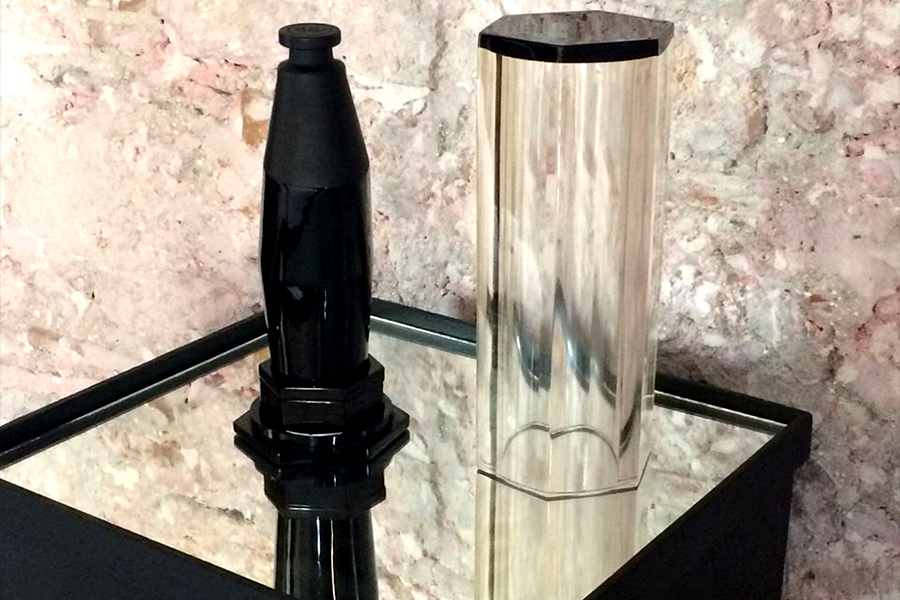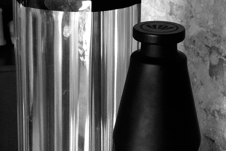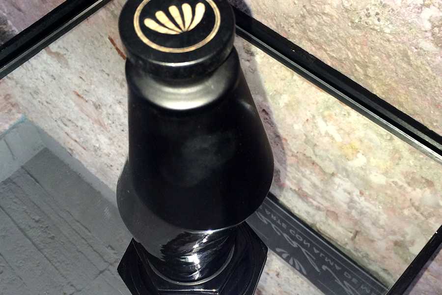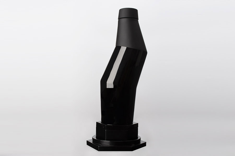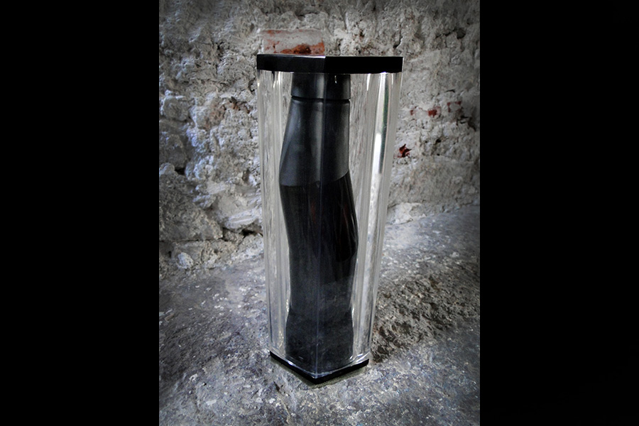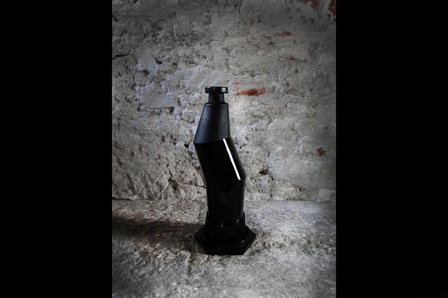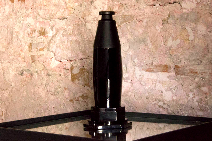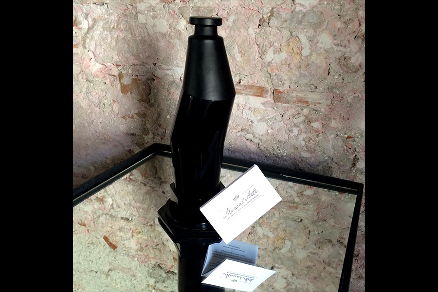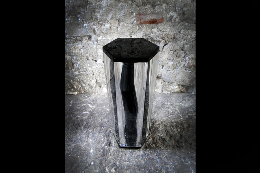 Raymundo Sesma created for MezcalArte a sculpture in black crystal of unequaled character, proposing a new vision of space in its most sublime form as a container for the soul of mezcal, an innovative idea that may appeal to the lovers of utilitarian objects that fuse the art of sculpture with the art of mezcal distillation.